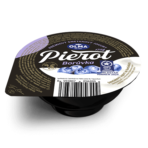 Pierot – prémiový smetanový jogurt na lahodném ovoci. Ve stylovém kelímku najdete ovocnou vrstvu borůvek, která je překrytá hustým smetanovým jogurtem.